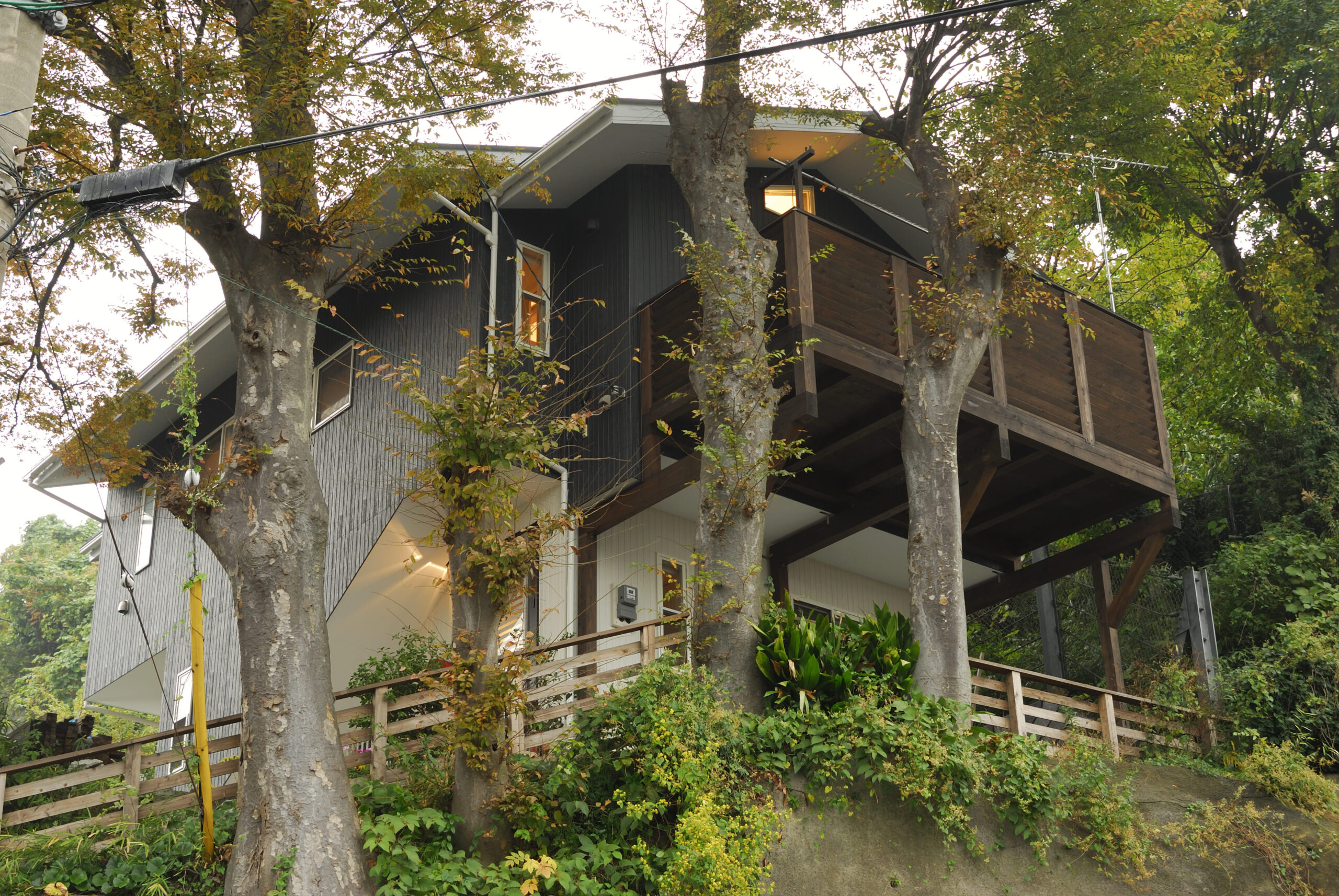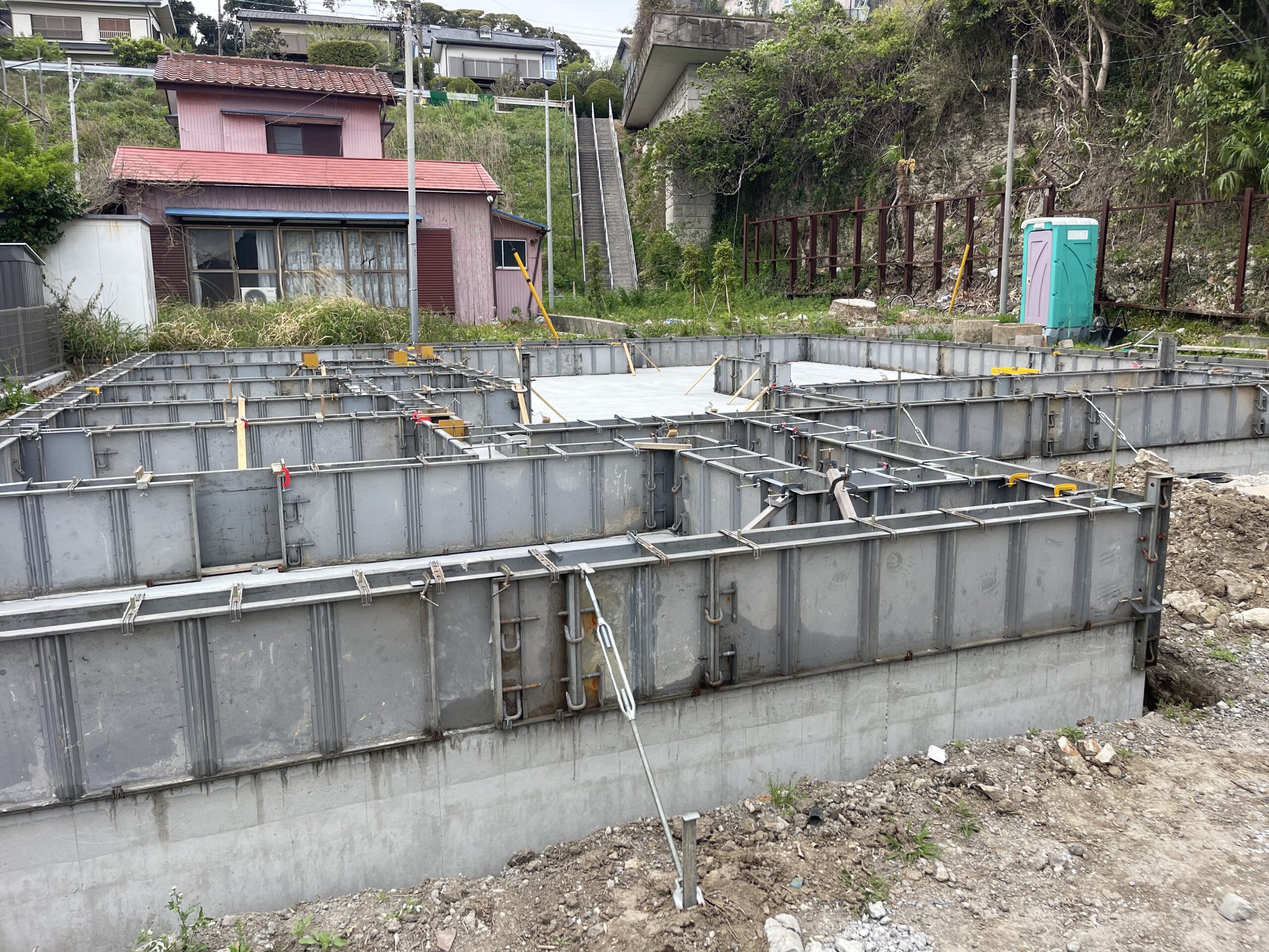 そのため裏側の土留が崩壊して来ても建物の安全性が担保出来る様に、高い基礎を造って安全性を確保しています。