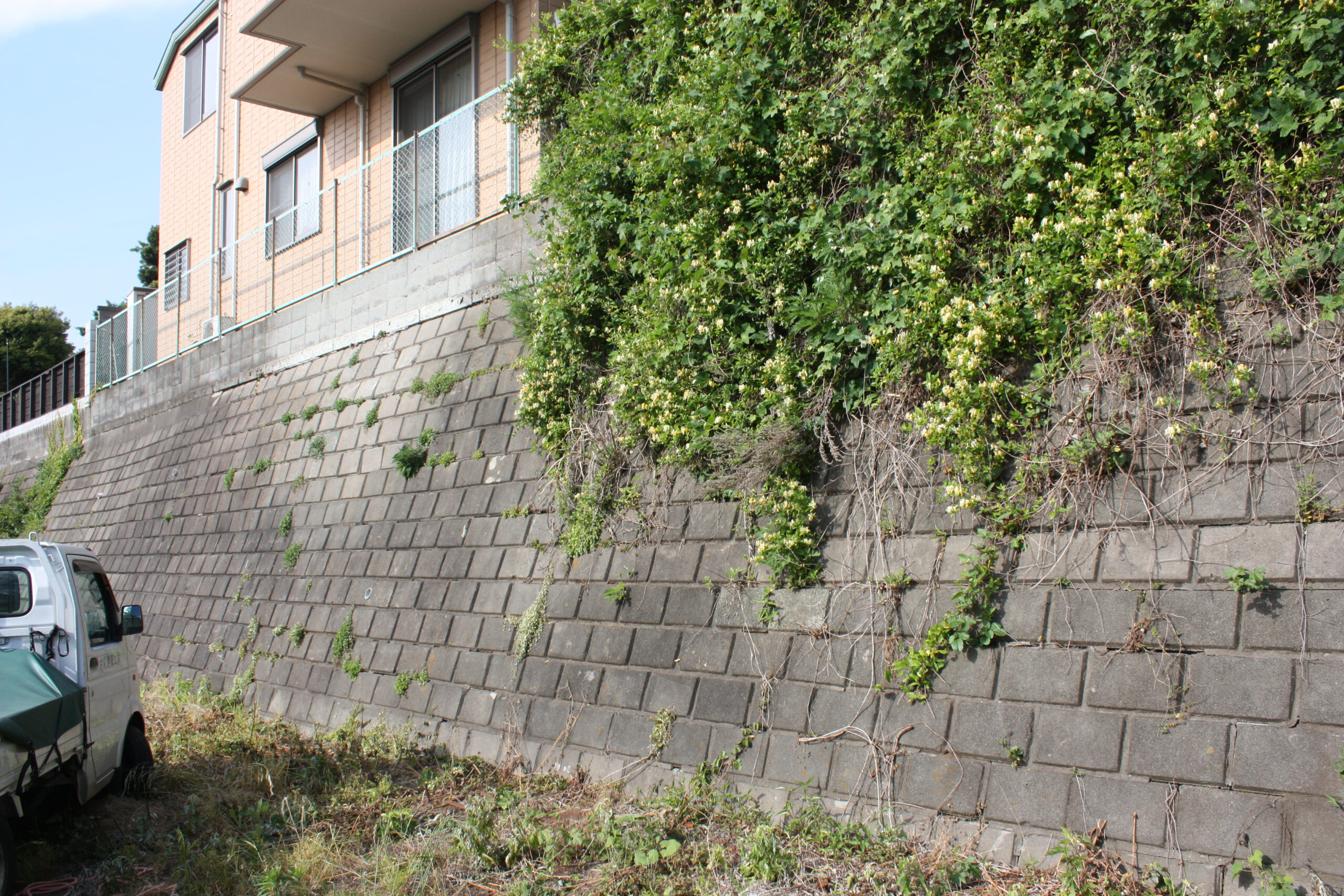 この土地の場合は家の前のみでなく、家の裏側のブロックも崩壊寸前でした。