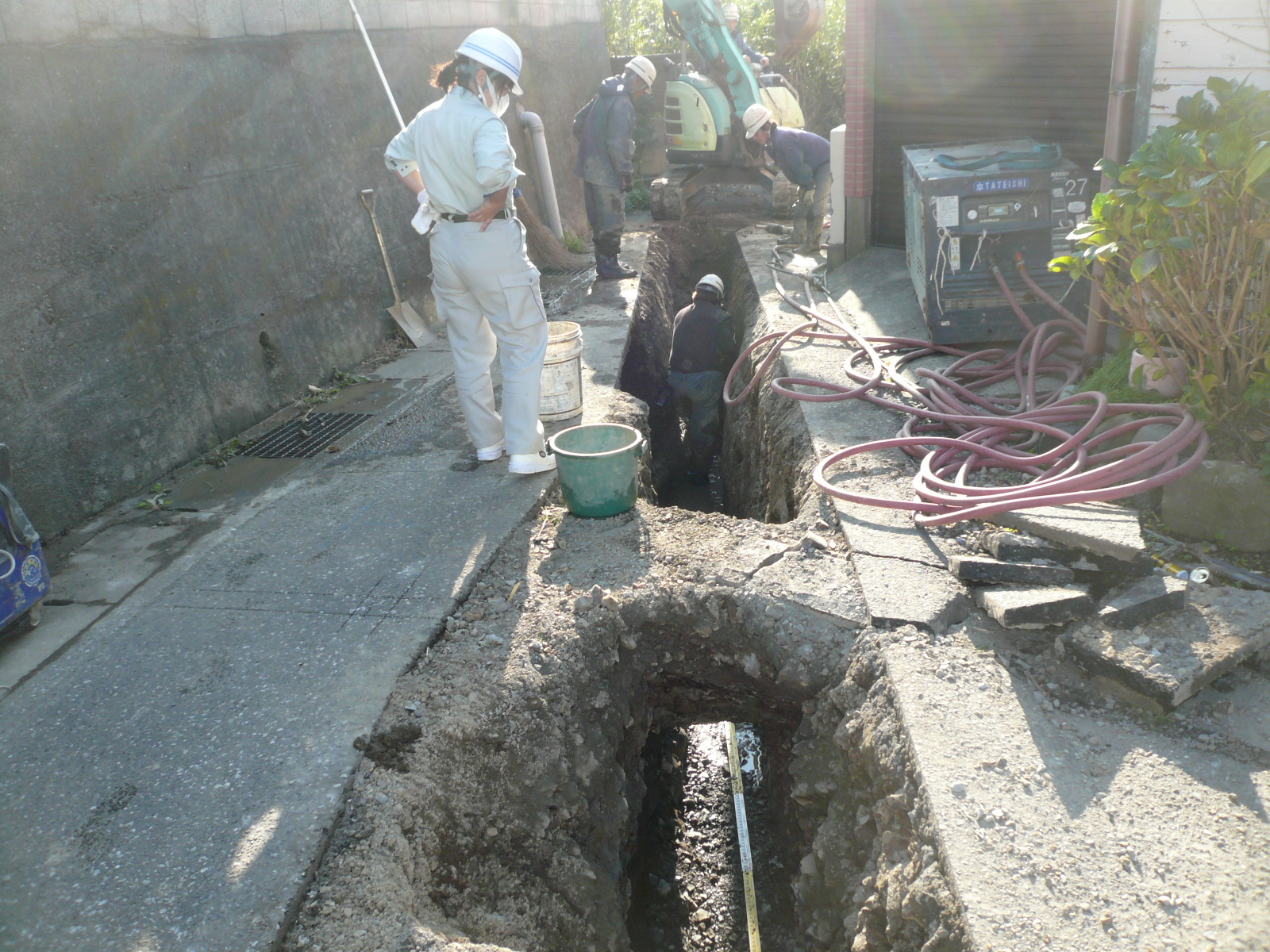 画像の様に本管がある場所まで、掘り進める事になります。