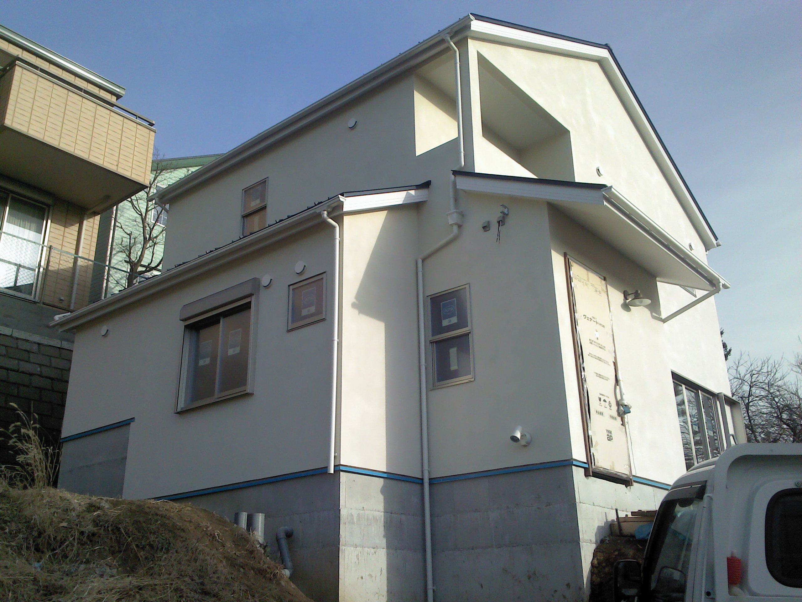 画像の家は実際に新築した家になるのですが、このケースの場合は土質を調べて自然崖の安全性を証明しました。