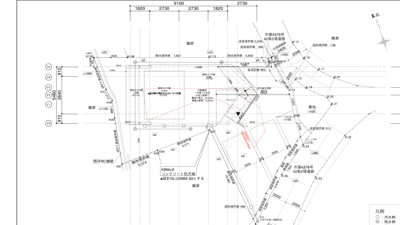 敷地内に高低差がある場合、基準となる高さを確認して設計を行うのですが。